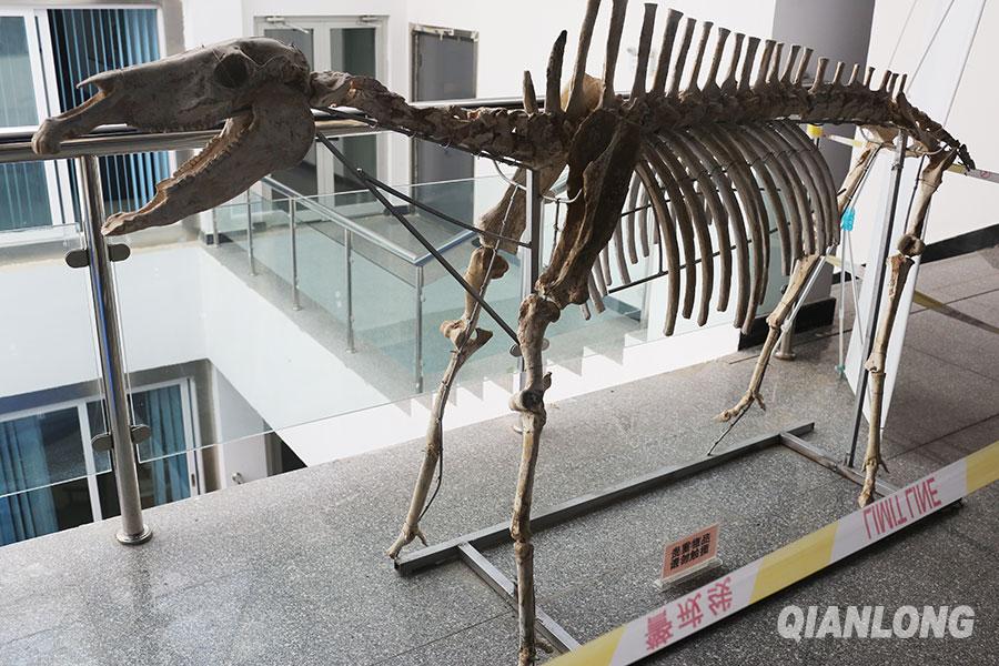 第五届中亚·新疆石材博览会开幕展上,展示的巨腊狗化石。千龙网记者 王自彬摄