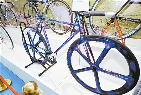 采用纯手绘手法,展现梦幻星空颜色的手工烤漆运动自行车。