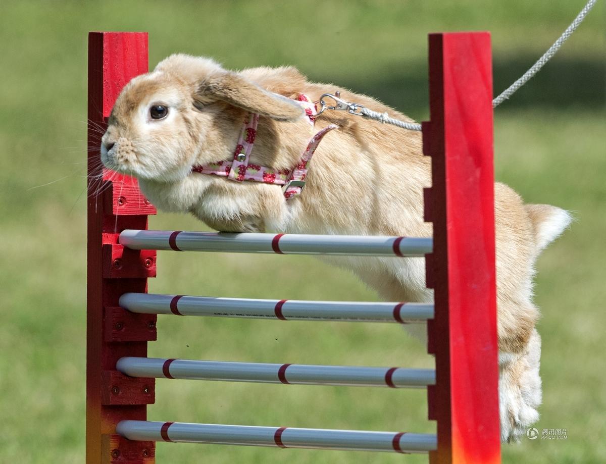 跨栏也是要分等级的,这只兔子跨越的就是四层的栏杆。