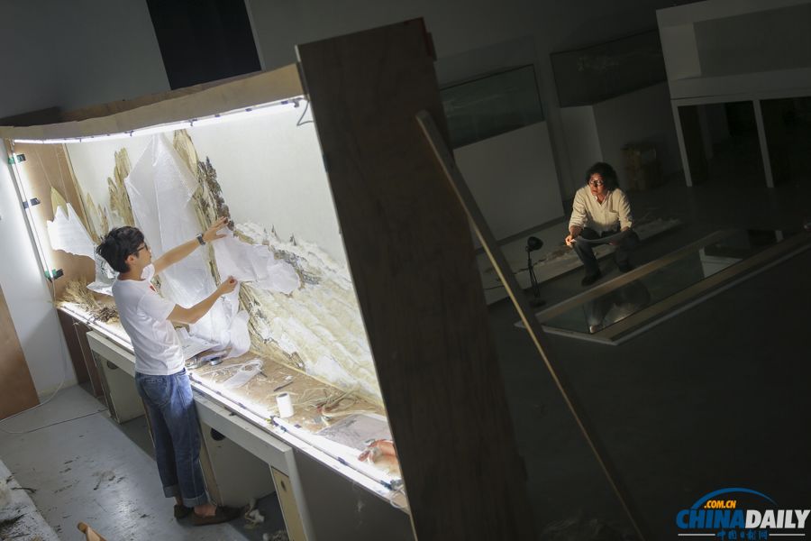 徐冰在指导助手创作。(记者 姜东 摄)
