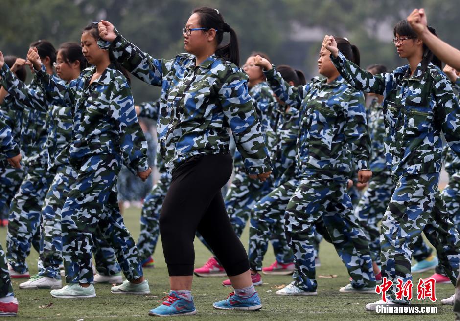 9月16日,南京农业大学的大一女生们在进行军训。中新社发 泱波 摄