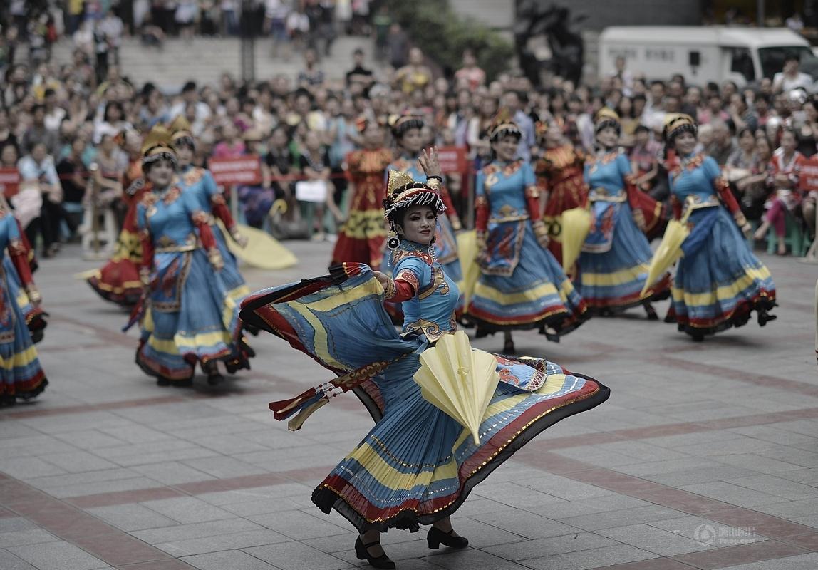 高清组图:重庆大妈广场舞比赛 赤脚露肚脐 赛过“小苹果”