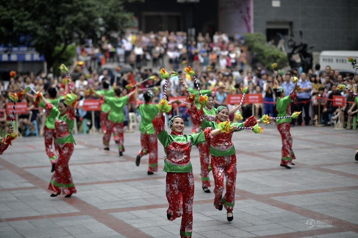 高清组图:重庆大妈广场舞比赛 赤脚露肚脐 赛过“小苹果”