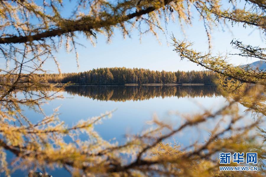 秋日内蒙古阿尔山杜鹃湖风光(9月18日摄)。杜鹃湖位于内蒙古阿尔山国家森林公园内,因春季湖畔开满杜鹃花而得名。杜鹃湖呈月牙形,是火山喷发形成的堰塞湖。 新华社记者 李任滋 摄