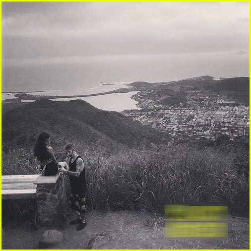 贾斯汀·比伯给女友看其在Instagram软件中发布的一张照片,此张照片也被拍到(见图)。