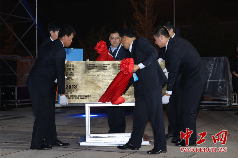 随着走过“设计之路”的嘉宾纷纷在观礼区域就位,在优扬的音乐声中,设计大奖铭牌镶嵌仪式正式开始。北京市委常委、宣传部长李伟,经典设计奖“红旗渠”所在地河南省林州市的市委常委、宣传部长谢东,林州市红旗渠管理处处长王广周,北京国际设计周2013设计大奖评委会主席王敏,共同将刻有2013年经典设计奖获奖项目“红旗渠”的铭牌永久镶嵌在中华世纪坛广场上。这些对世界文化影响深远的经典设计项目所获的荣誉,将与浓缩着华夏文明五千年历史的中华世纪坛一起永久留存,向世界与后人彰显了中国人的大设计智慧。