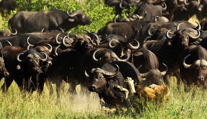 见势不妙的狮子拔腿就跑,但因受伤而速度很慢,结果被水牛群赶上。无路可走的狮子在草丛内藏身,但被水牛发现,并遭到牛角和牛蹄的轮番进攻,最终被水牛们活活踩死。拍下上述场面的摄影师Lyle Gregg称,这头狮子有四个儿子和若干“孙子”。(高轶军)