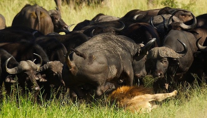 组图:孤独雄狮被大群水牛踩踏而死