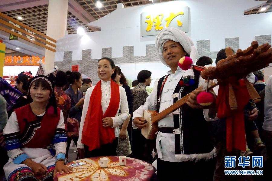 10月12日,来自云南大理白族文化保护实验区的艺人在第三届中国非物质文化遗产博览会上展演白族文化。新华社记者冯杰摄