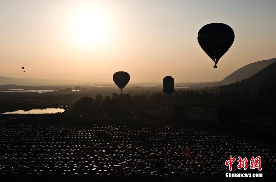 当地时间2014年10月14日,以色列耶斯列谷,当地举办国际热气球节。