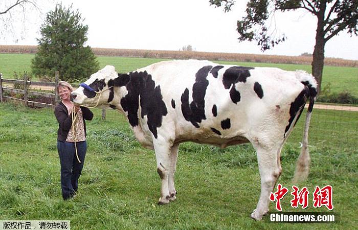 据外媒2014年10月14日报道,日前外国一头名为Blosom被授予世界最高奶牛的称呼,近2米的身高引众人围观。