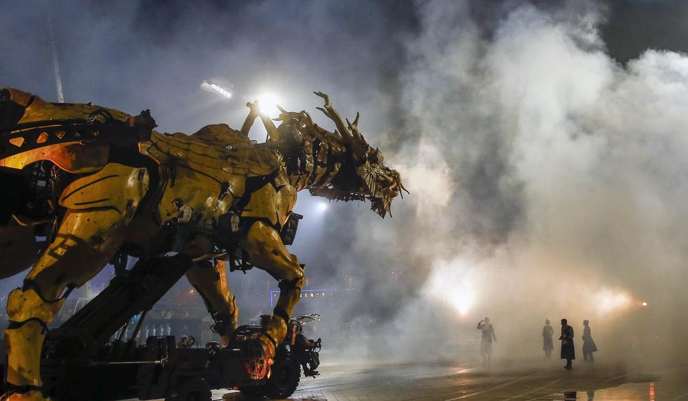 10月19日,北京国家体育场外广场,法国“龙马”巡游举行了闭幕演出,图为表演精彩瞬间。