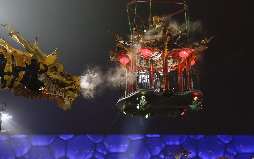 10月19日,北京国家体育场外广场,法国“龙马”巡游举行了闭幕演出,图为表演精彩瞬间。