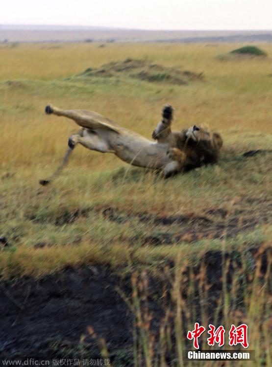 “失足”雄狮 摔跤啃泥狼狈不堪