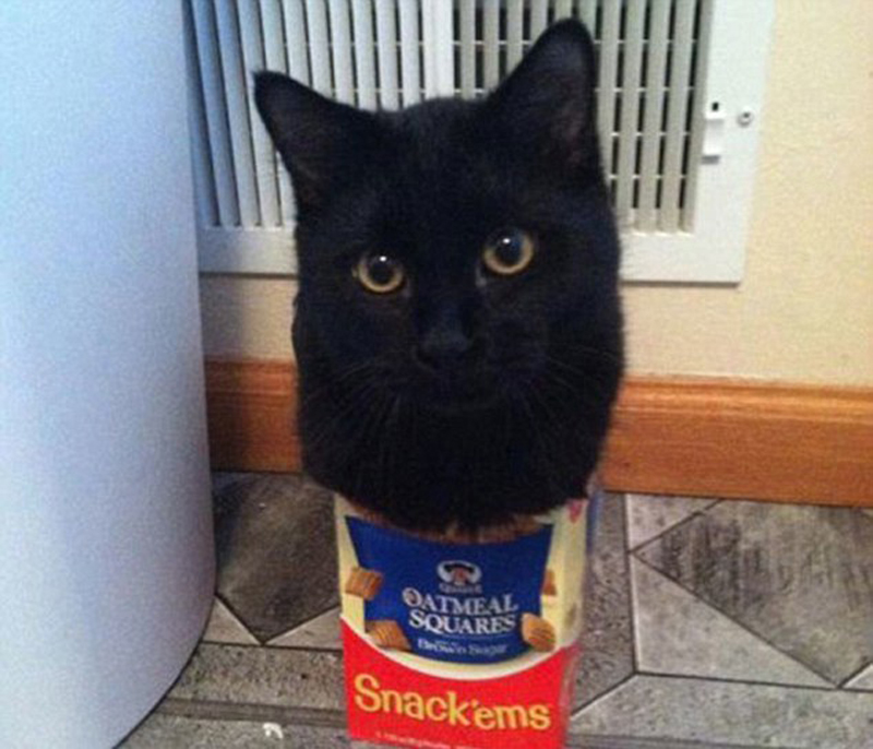这只猫咪竟然挤到了这个麦片袋中!(网页截图)