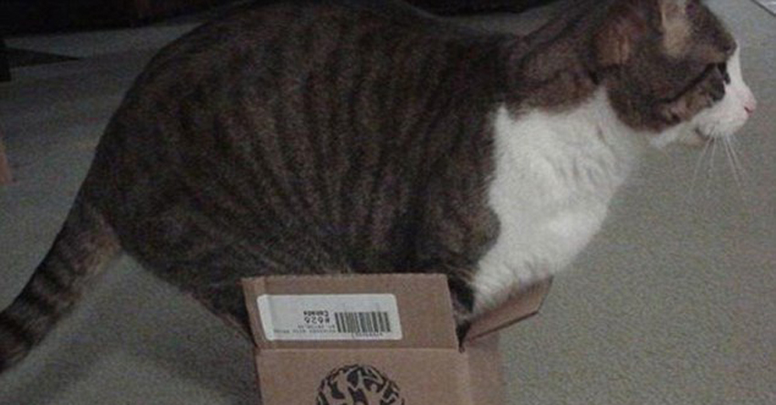 这只猫咪试图钻进这个小箱子,但它庞大的躯体阻碍了它。(网页截图)