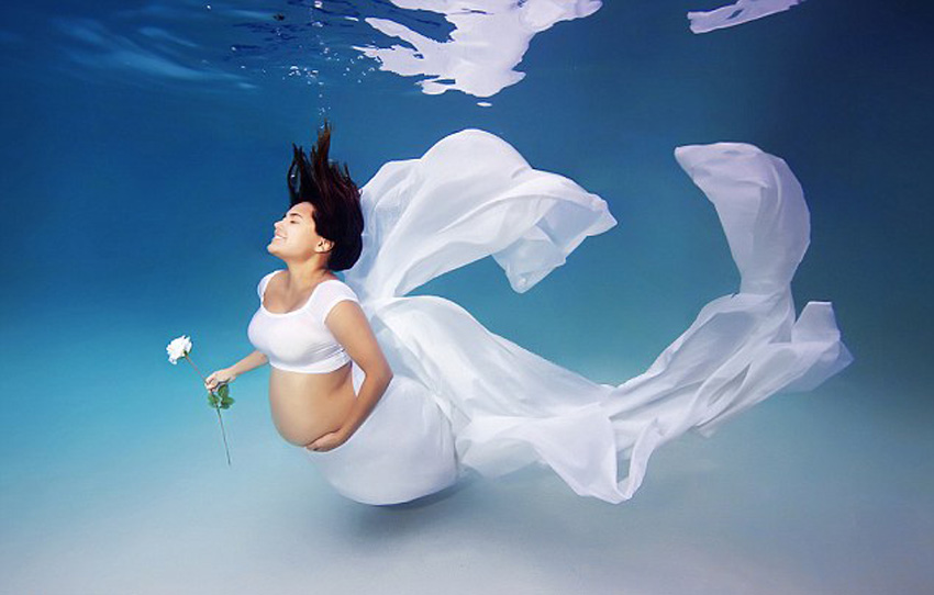 虽然在水中拍摄,但孕妈妈们表情看上去都毫无压力。(网页截图)