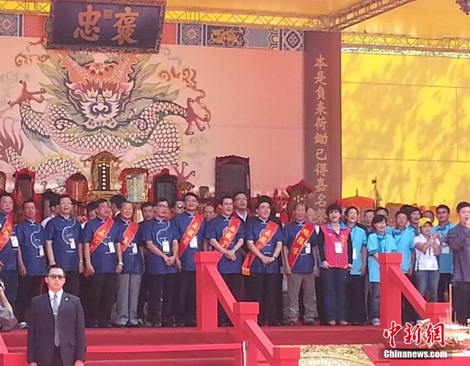 26日,在台北市客家文化主题公园内,台湾当局领导人马英九作为“正献官”参与台北客家义民祭最隆重场景——“主祭大典”。10月24日至27日,由台北市客家事务委员会主办、为期四天的“2014台北客家义民嘉年华”,分别在“中正纪念堂”、客家文化主题公园精彩上演。 中新社发 朱晓颖 摄