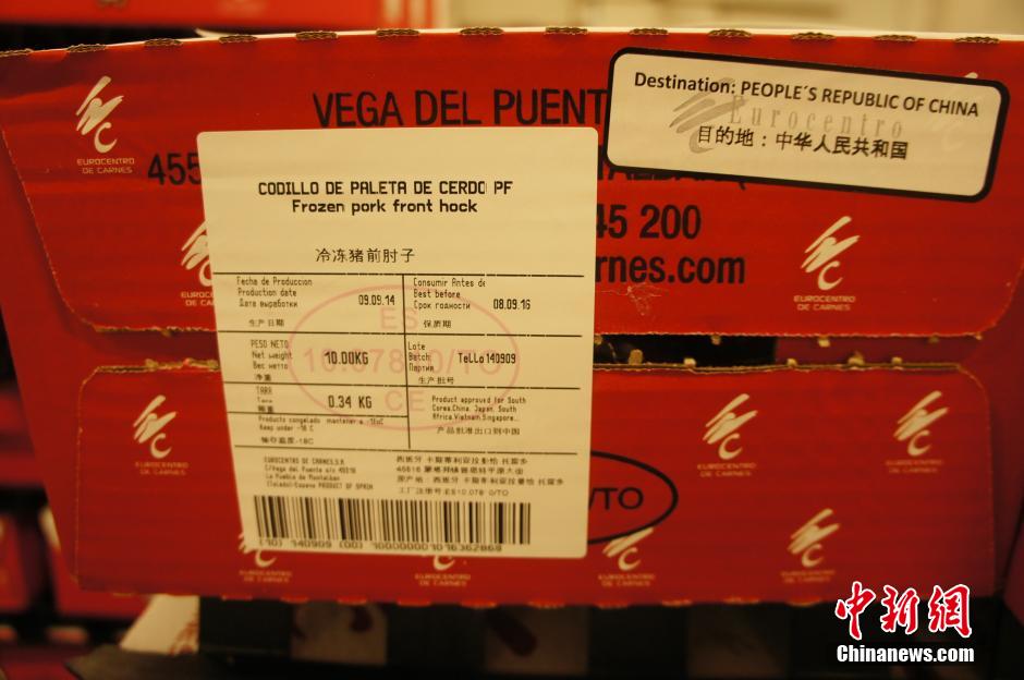 图为,出口到中国的肘子。