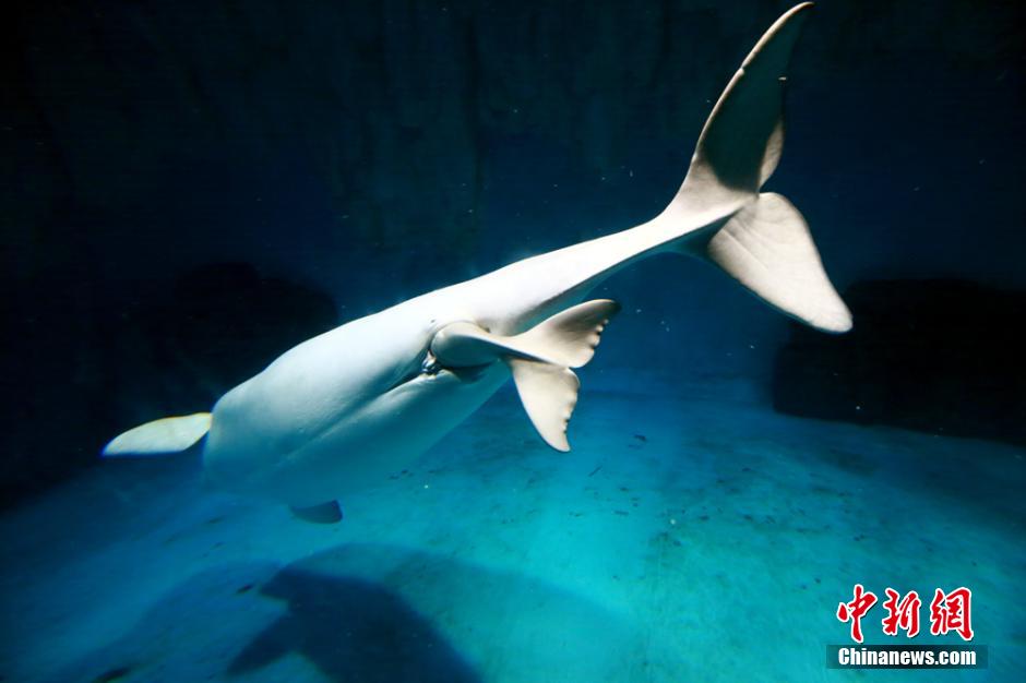 10月29日,长沙海底世界一只名叫“卓雅”的白鲸,成功产下一头小白鲸。白鲸妈妈产子过程被长沙海底世界记录下来。黄为 摄