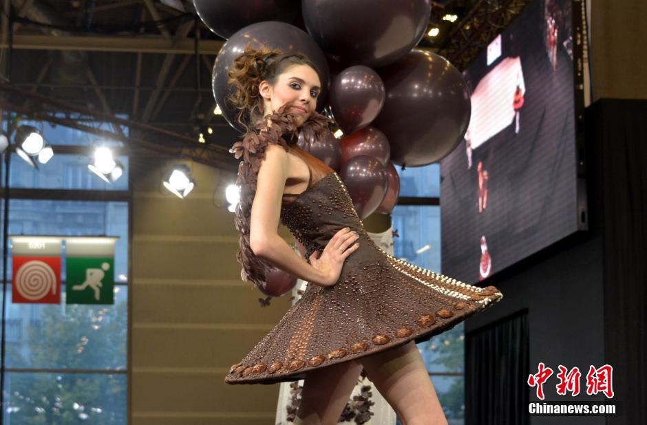正在法国巴黎举行的新一届巧克力沙龙用琳琅满目的巧克力食品和以巧克力为灵感的时装秀庆祝20岁生日。本届沙龙从10月29日至11月2日持续5天,约220家机构参展。自1994年第一届巧克力沙龙举办以来,该展会已累计吸引640万参观人次,参展商逾8000家。 中新社发 龙剑武 摄