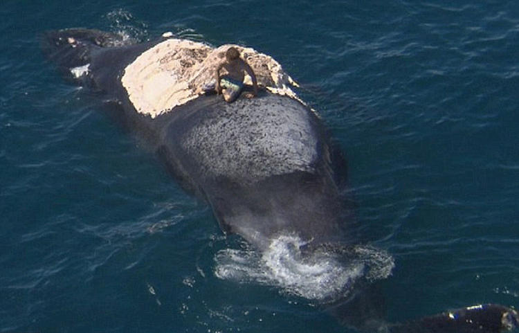 还没等他回过神,他已经身处危险的鲨鱼圈,数条鲨鱼正在围着这只鲸鱼尸体打转,寻找觅食时机。