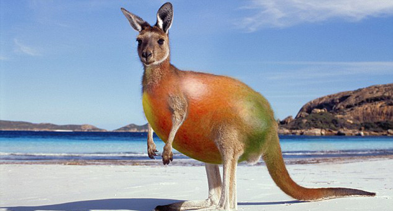 达雷默并非仅限于将动物之间的结合,她还将袋鼠与芒果结合在一起。