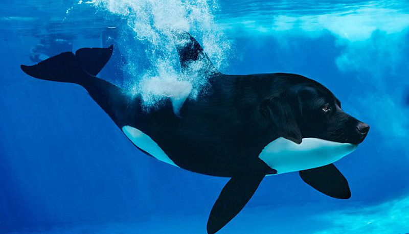 达雷默将杀人鲸与黑色拉布拉多猎犬无缝结合。