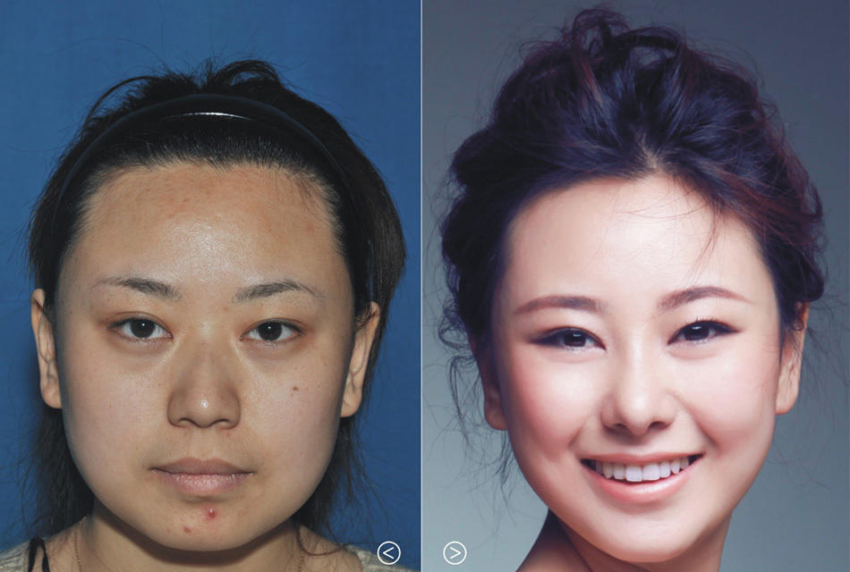 图为武汉女子谢玉梅,26岁,其职业是一名爵士舞教练,图左为整容前正脸照,图右为整容后正脸照。此前她痛恨的自己塌鼻、短下巴、大饼脸、毛发旺盛;在某机构进行了开外眼角、达拉斯综合隆鼻、丰下巴、面部吸脂、BOTOX 注射瘦脸、脱毛。