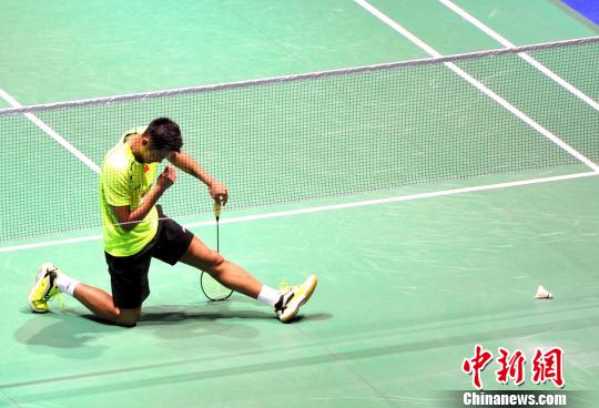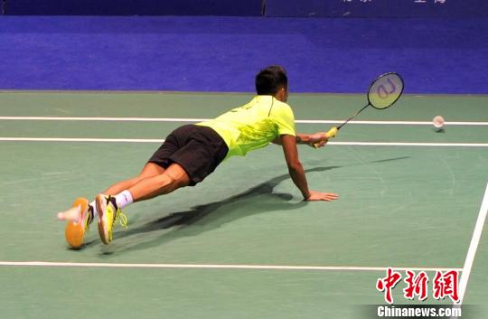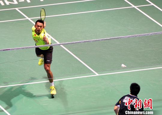 图为“超级丹”林丹带伤在家乡作战,顺利晋级下一轮。 王东明 摄