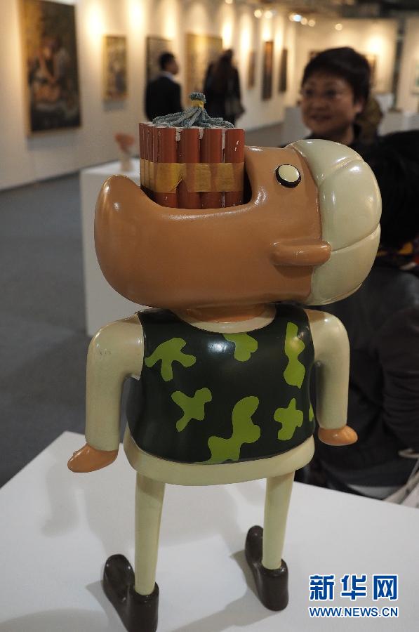 11月12日,上海艺术博览会举行预展,青年艺术家推介专场引人注目。 11月13日,第十八届上海艺术博览会在沪开幕。来自中国、西班牙、德国、法国、美国、俄罗斯、乌克兰、英国、荷兰、加拿大等12个国家的148家画廊携数千件国画、油画、雕塑、版画、影像、装置、陶瓷等艺术品参展。本届艺博会主题为“收藏就是时尚”,既有身价高达450万的大师典藏名作,也有青年艺术家作品,更有艺术衍生品和限量复制作品,参展画廊充分考虑上海本土藏家和艺术品消费者的口味与爱好,不仅在价格定位上亲民,在作品样式和风格挑选上也极具亲和力,旨在吸引更多年轻人进入艺术品收藏市场。新华社记者 任珑 摄