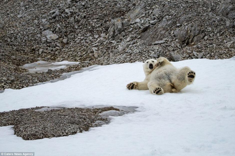 据英国《每日邮报》当地时间11月13日报道,近日爱尔兰摄影师Peter Cox在穿越北极的1800英里的里程中,拍摄了一系列北极风光的照片。其中陡峭的冰山以及可爱的北极动物让人过目难忘。图为在雪地里打滚的北极熊。(网页截图)