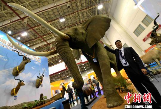 11月23日,取材于成年公象,产自南非,体长6米,高3.3米,身宽2.8米,体重近3吨的非洲“象王”亮相厦门。张斌 摄
