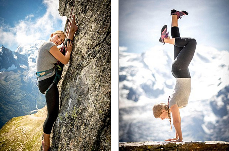 彼得里尼在绝壁上表演劈腿、尝试倒立。(网页截图)