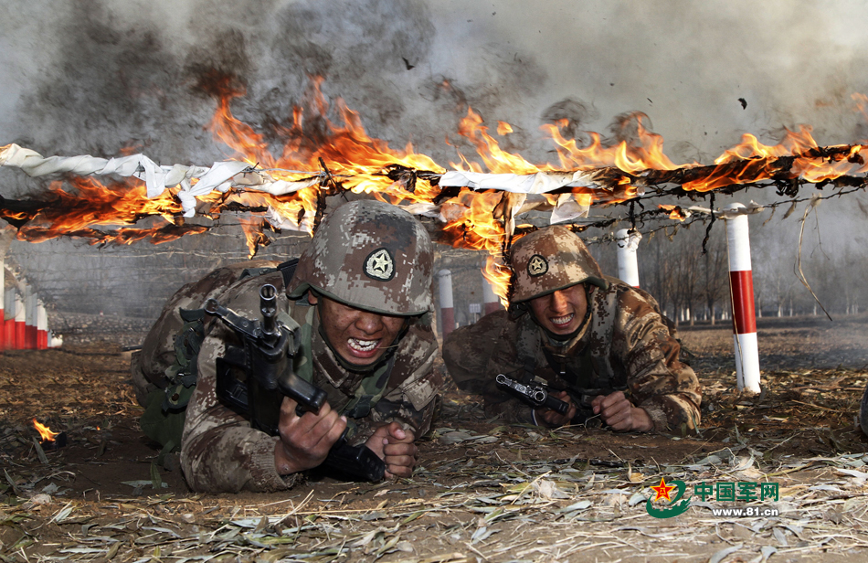 连日来,兰州军区某红军团新兵营训练场,爬火网、钻火圈、过烟障等近似实战的练兵场景不断,通过设真、设难战场环境,让新兵在实战的环境中锤炼过硬心理素质,在兵之初培养新战士能打胜仗的血性虎气。袁宏彦摄