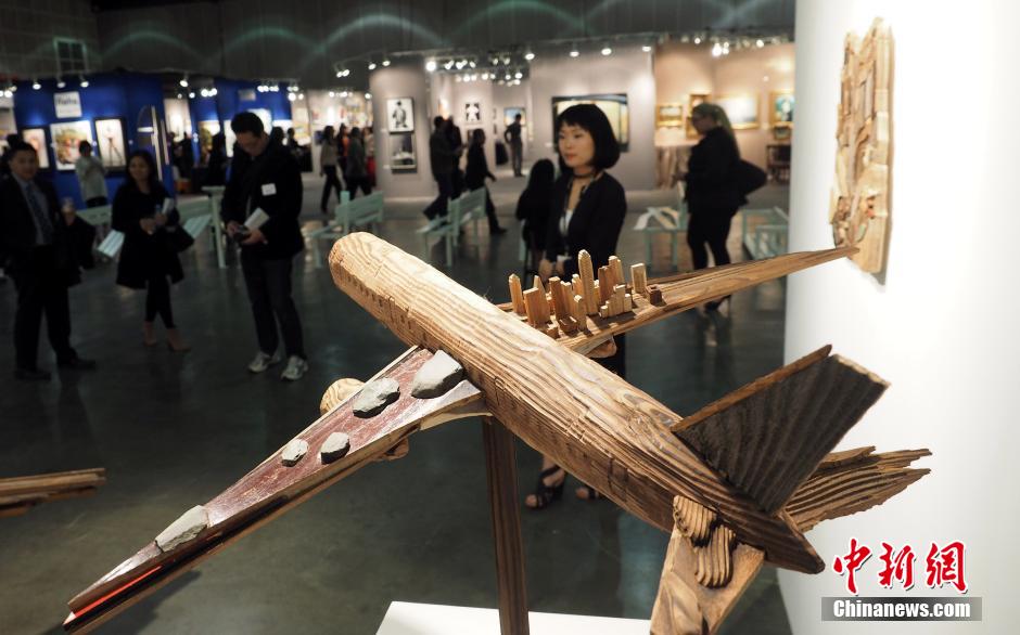当地时间1月14日晚,2015年洛杉矶艺术展在洛杉矶会展中心开幕,图为来自日本大阪艺术家的参展雕塑。中新社发 毛建军 摄