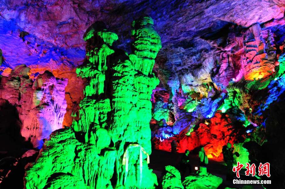 1月23日,甘肃武都万象洞的奇特景致吸引游客惊叹。万象洞位于甘肃陇南市武都区白龙江南岸露骨山汉王镇杨庞村的半山腰。该洞己有2.5亿年的历史,是中国西北地区发现的一处规模宏大,艺术价值极高,可与举世闻名的桂林芦笛岩,肇庆七星岩相媲美。既具北国之雄奇,又有南国之灵秀。位列中国四大名洞之一,享有“华夏第一洞”的盛誉,号称“地下文化长廊”,又称“地下艺术宫殿”。杨艳敏 摄