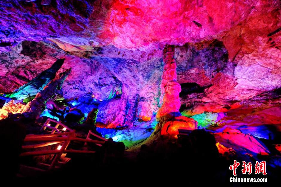 1月23日,甘肃武都万象洞的奇特景致吸引游客惊叹。万象洞位于甘肃陇南市武都区白龙江南岸露骨山汉王镇杨庞村的半山腰。该洞己有2.5亿年的历史,是中国西北地区发现的一处规模宏大,艺术价值极高,可与举世闻名的桂林芦笛岩,肇庆七星岩相媲美。既具北国之雄奇,又有南国之灵秀。位列中国四大名洞之一,享有“华夏第一洞”的盛誉,号称“地下文化长廊”,又称“地下艺术宫殿”。杨艳敏 摄