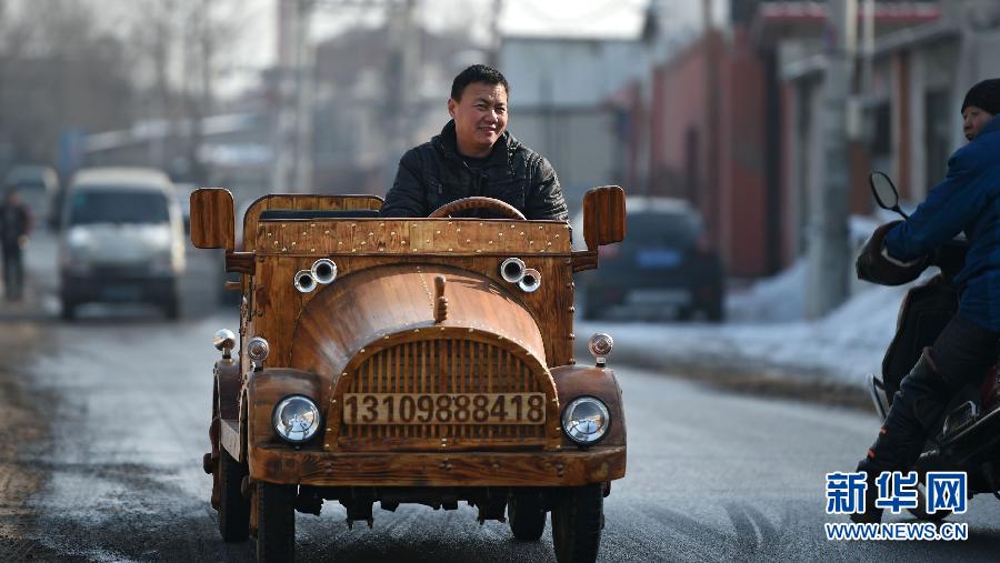 刘福龙驾驶着他的第二辆木质汽车行驶在路上(1月20日摄)。新华社记者 姚剑锋 摄