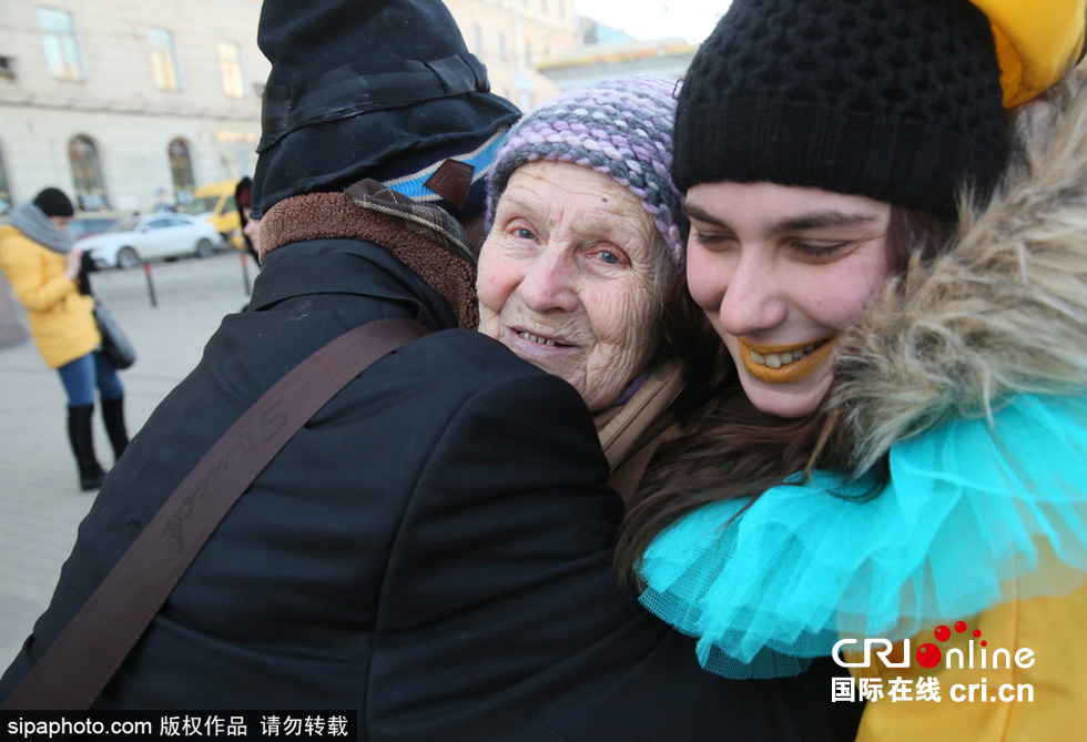 俄罗斯民众街头庆祝国际拥抱日(高清组图)