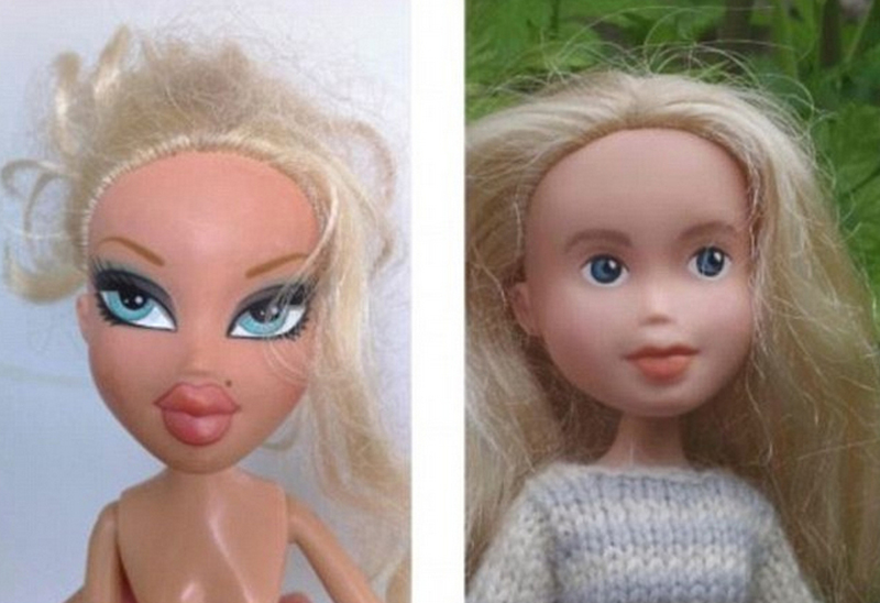 辛格将一些二手娃娃“妙手回春”,图为改造前(左)和改造后(右)的娃娃。(网页截图)