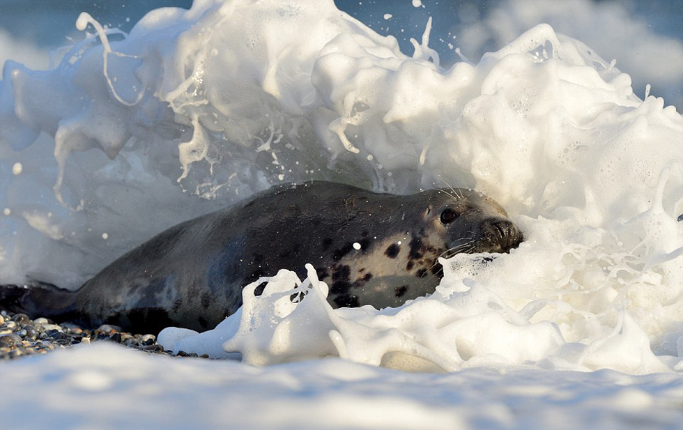 似乎是因为捕鱼累了,海豹们在海边儿歇息。(网页截图)