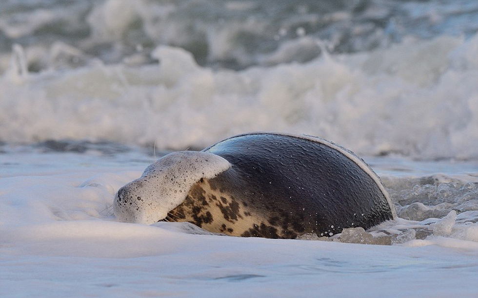 海豹的脸被“泡泡”遮住了。(网页截图)