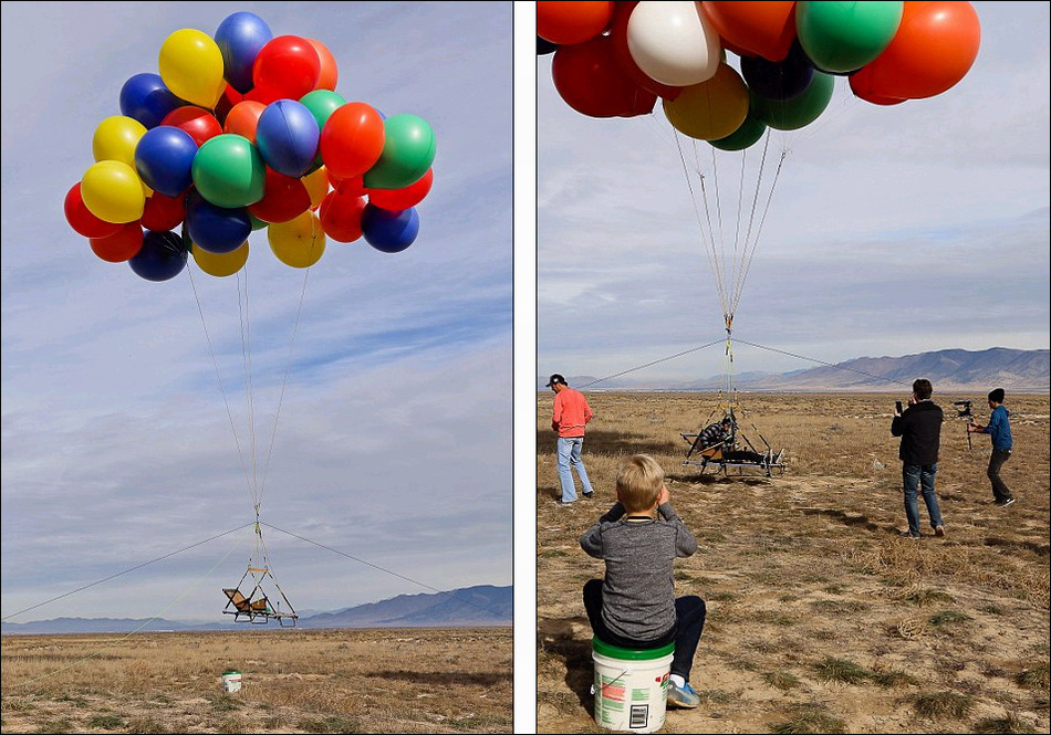 家人和朋友帮助罗纳将数十只颜色亮丽的气球绑在躺椅上。(网页截图)