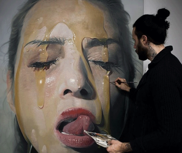 德国艺术家迈克·达尔盖创作人像油画,立体感十足犹如真人。(网页截图)