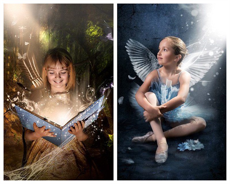 左图,10岁的米莉·露西·佩蒂(Millie Lucy Petty)喜欢读书。右图,8岁女孩劳伦·斯凯尔顿(Lauren Skerton)想拥有童话中的翅膀。