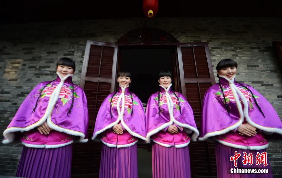 2月11日,“晚清第一园”扬州何园的“何家千金”换新冬装,新款冬装的设计风格是纯粹的“晚清风韵”——西式的凤仙领,中式的坎肩、裙子,这与何园所建的时代(清光绪年间)以及何园建筑中西合璧的风格相匹配,新款冬装选用端庄大气的紫色,上衣有牡丹花花纹,每朵牡丹花上还有镏金寓意“金枝玉叶 祥瑞降临”,新装衬托出何园独有的晚清园林文化魅力,“何家千金”成冬日何园里一道亮丽的流动风景。 中新社发 孟德龙 摄 图片来源:CNSPHOTO