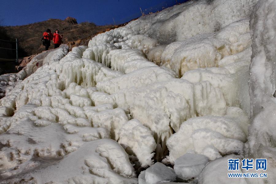 2月11日,游客在宣化县桑干河大峡谷飞瀑峡观赏冰瀑。冬季,位于河北省宣化县西南的桑干河大峡谷飞瀑峡内瀑布冻成晶莹剔透的冰瀑,悬挂在峭壁上,显得越发壮美。 新华社记者 杨世尧 摄