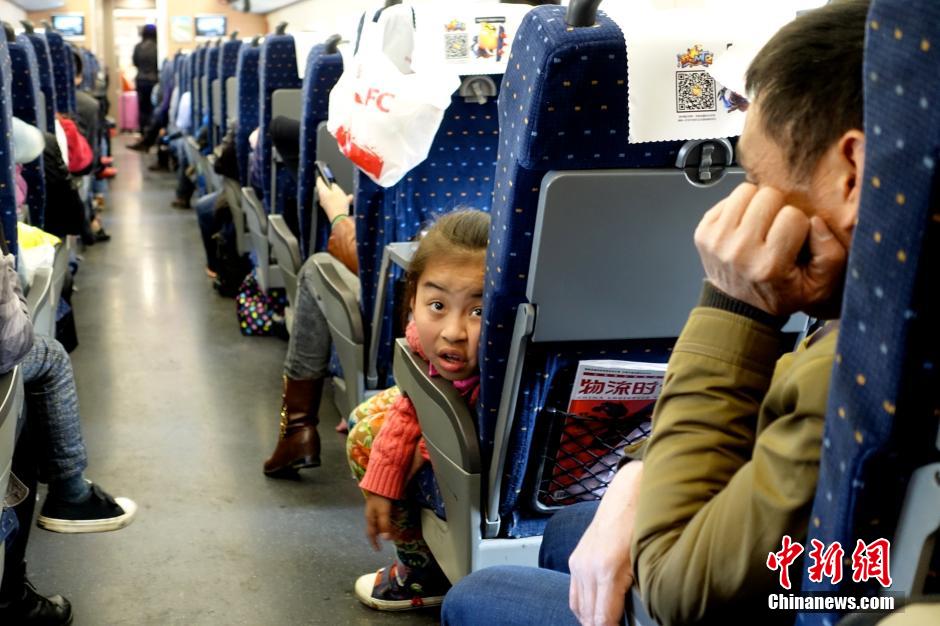 深圳北站至北京西站约2158公里。2月15日,回家过年的旅客早晨7:53分 乘高铁G72一路向北。列车满载乘客高速行驶在京深铁路线上,时速曾高达310公里飞奔,列车穿行在广东、湖南、湖北、河南、河北大地,一路阅尽南北风光,全程行驶约10小时27分。朝发夕至,回家过年的感觉真好。也有旅客感叹:高铁快捷舒适,就是有点贵,如果车厢里有WI-FI那就更好了。 中新社发 陈文 摄