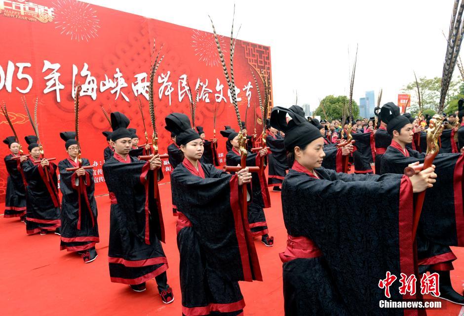 来自福州福清市的36名礼乐舞者展演《佾舞》。刘可耕 摄